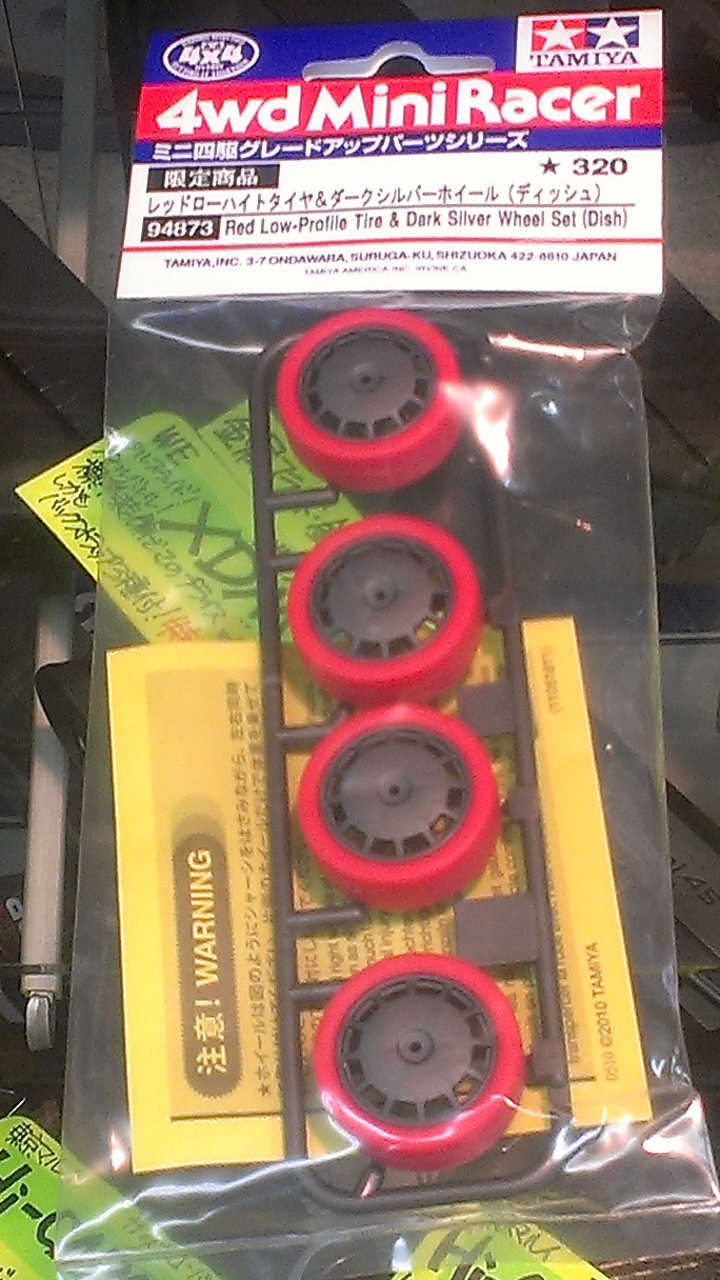 ●ミニ四駆限定 レッドローハイトタイヤ&ダークシルバーホイールセット(ディッシュ)●